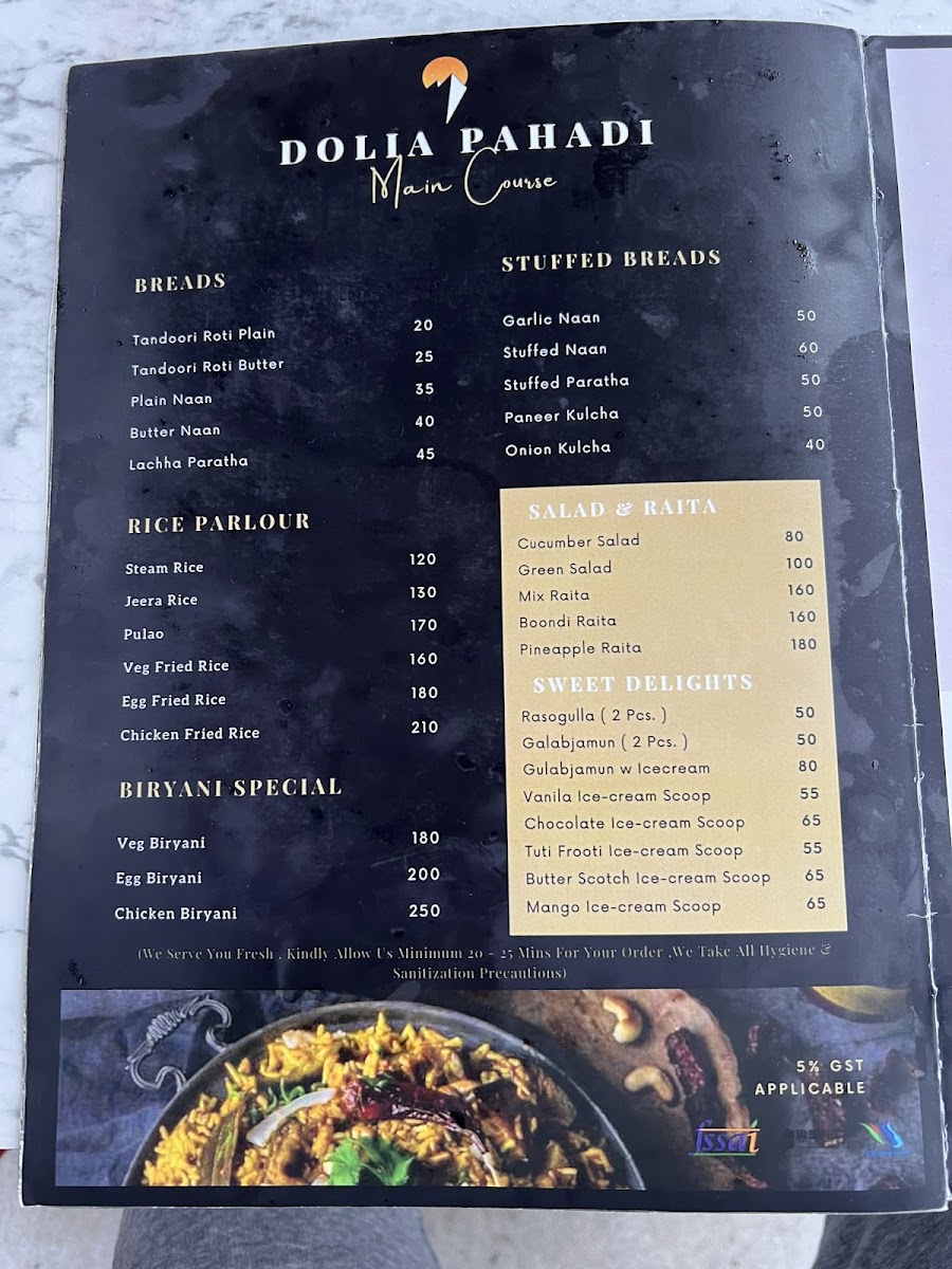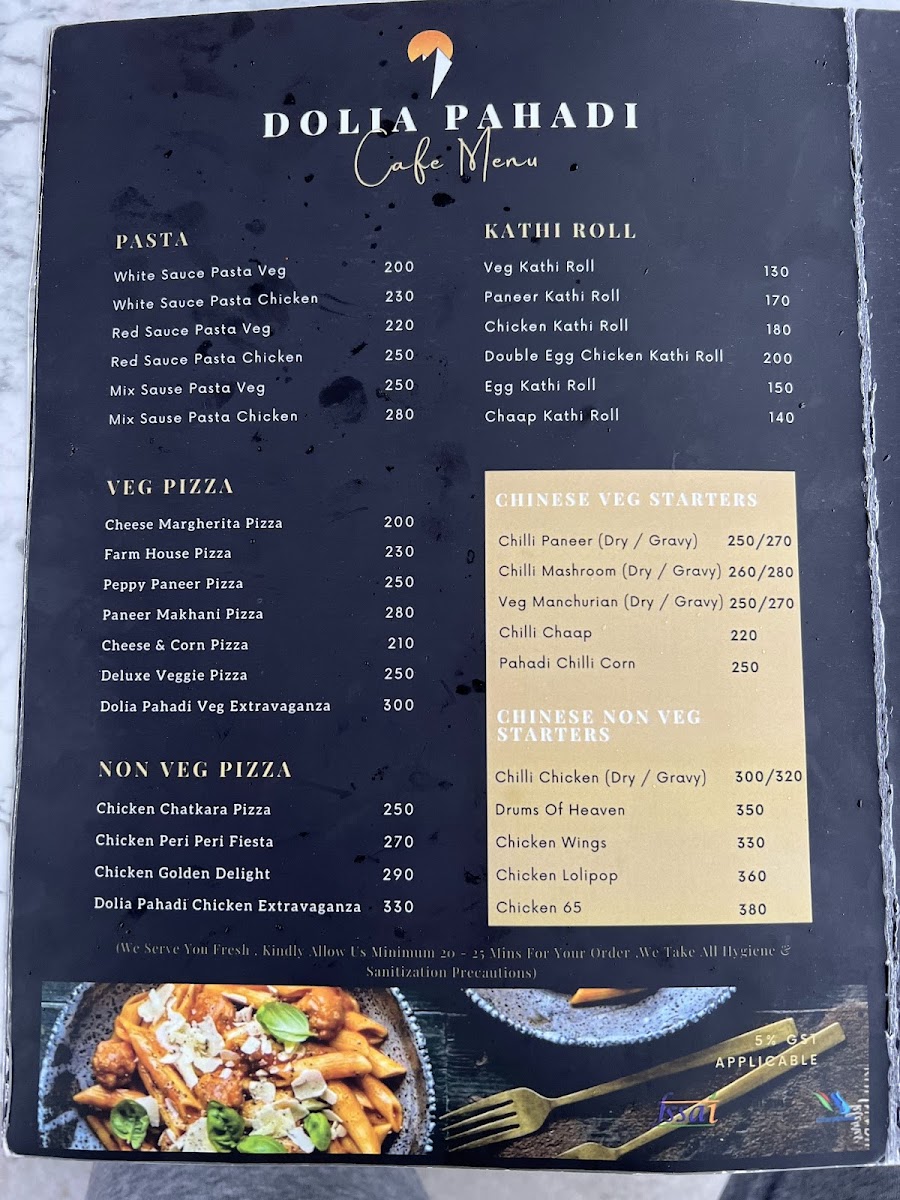 At Dolia Pahadi Roof Top Café And Restaurant, the menu is a delightful exploration of flavors, perfectly complementing the scenic backdrop of Ranikhet’s majestic hills. Offering a range of hot beverages such as Masala Chai and Hot Chocolate, it's the ideal spot to kick back and unwind.